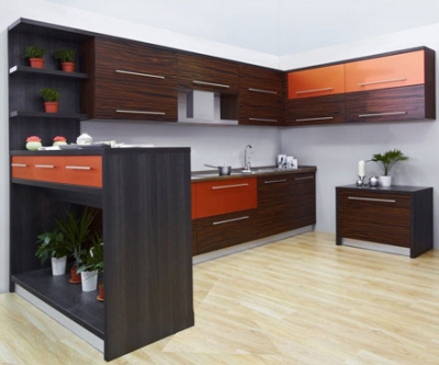Достойным выбором станут кухни из шпона, предлагаемые нашей компанией. Сохраняя все декоративные преимущества натурального дерева, такая мебель обладает практичностью современных материалов. Оригинальная природная фактура различных пород дерева, используемых на нашей фабрике для производства шпона, позволит мебели гармонично вписаться в интерьере вашей кухни. При этом основной мебельный каркас, выполненный их более технологичных и дешевых МДФ и ДСП, обеспечивает множество вариантов конструктивных решений и долголетнюю службу нашей продукции. Эта модель привлекает в первую очередь удивительными дизайнерскими находками по отношению к деталям. Основная идея кухни очень современна и рациональна. Творчество лаконизма — так можно коротко охарактеризовать данную модель. Гармоничное сочетание прямых линий и открытых пространств с нетривиальным подбором цветовой гаммы придает этой кухне нетрадиционный характер. Современный чистый дизайн, стильная фурнитура — все предельно рационально и одновременно очень уютно. Облицовка фасадов кухни Тафель зебрано + эмаль придает пространству больше декоративности. Удобство использования внутренних объемов усиливается благодаря увеличенному масштабу элементов. Объемно-цветовое решение данной модели задает строгий, серьезный тон. СТОИМОСТЬ от 15 000 руб. п./м.